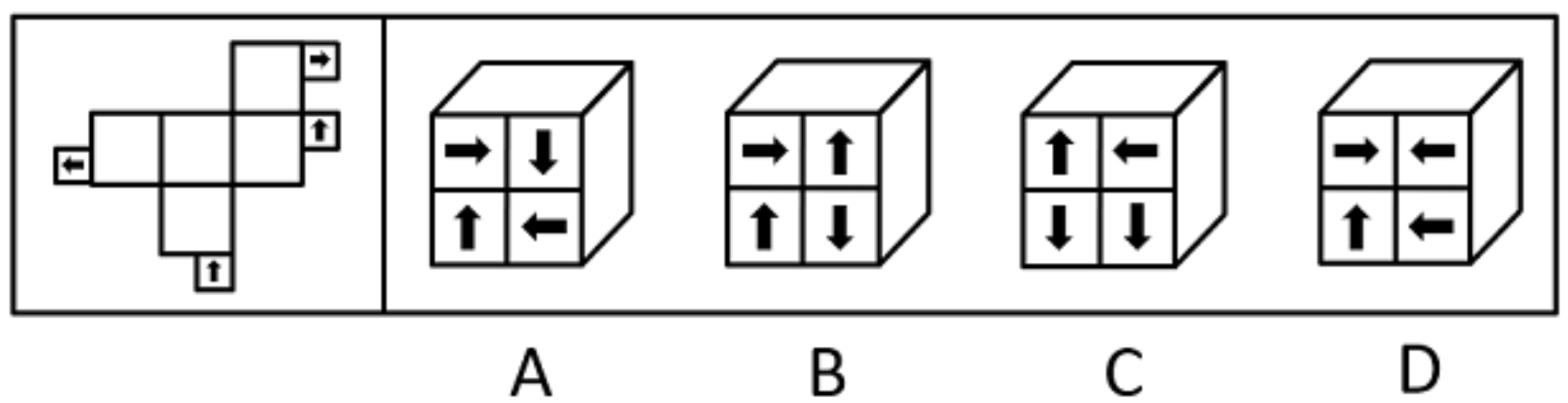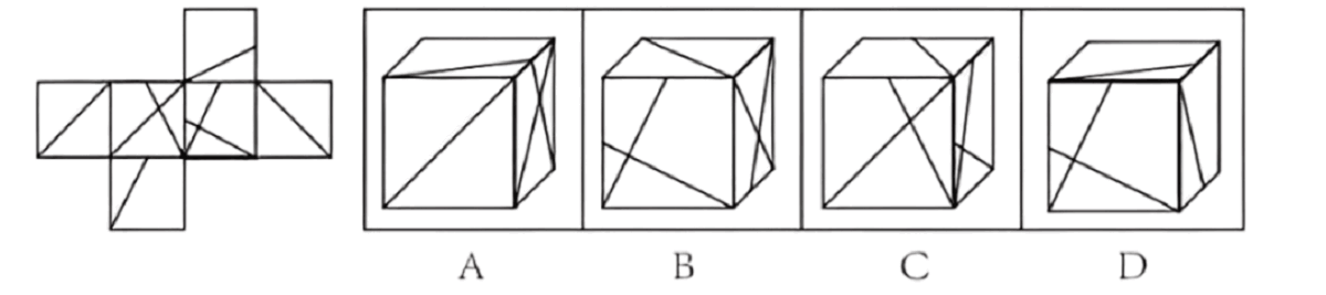 - 题干问"哪一项能由它折叠而成"或"哪一项不能由它折叠而成"