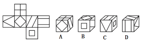 - 题干给出正方体的平面展开图,选项给出4个立体图形